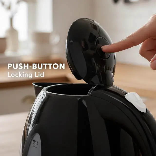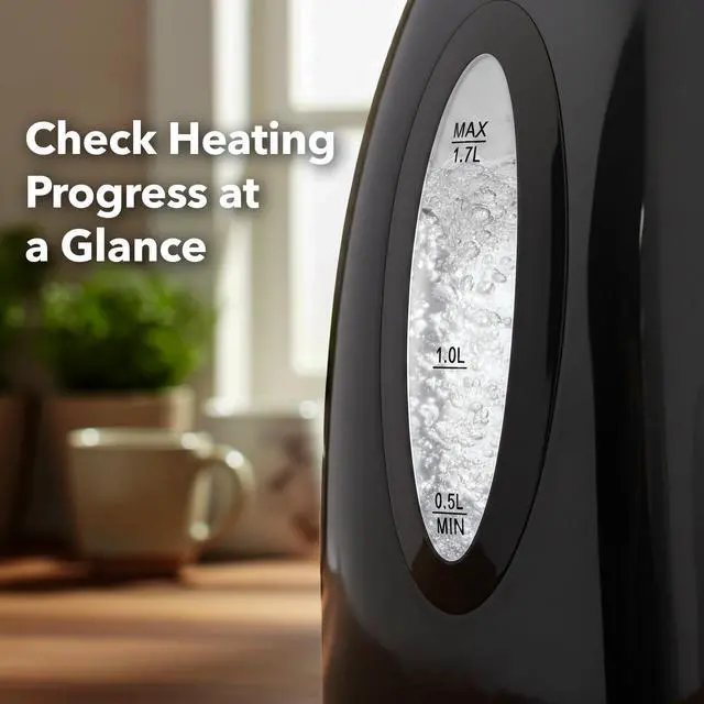 Powered by 1100W, it boils a full 1.7L of water in just a few minutes. Equipped with boil-dry protection and auto shut-off for added safety.