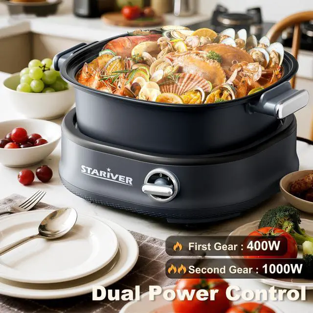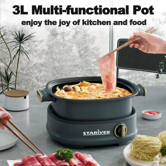 Stariver 3L Non-Stick Hot Pot Electric with Dual-Power Control,Electric Shabu Shabu Pot with Removable Pot, Electric Pot with Tempered Glass Lid for Party, Family GatheringSilver