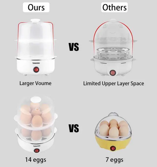 Steam-boil fresh and nutritious eggs the way you want in just minutes with one-button operation. Cooks up to 14 eggs.