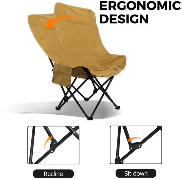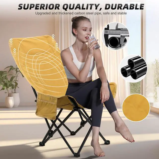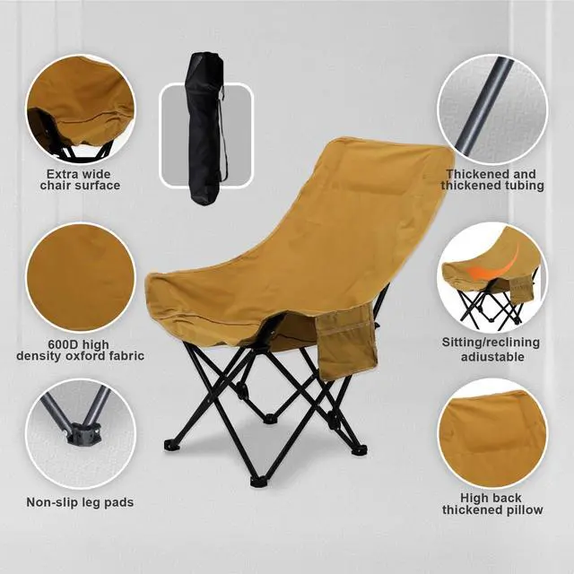 New Design: High backrest and adjustable angle are the highlights of this folding chair. Both angles are adjustable for sitting or semi-reclining. The high backrest design provides better support for neck and back and is comfortable even for long time use
