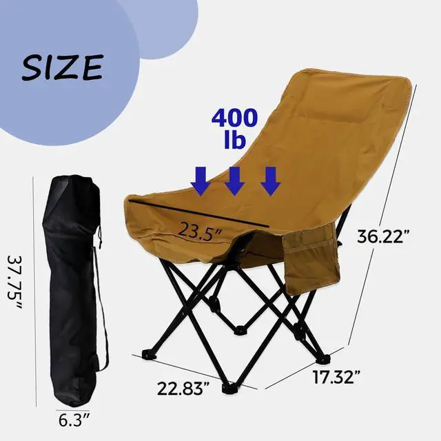 Portable Folding Chair: SIZE:22.8*17.3*36.2in. Comes with a carry bag for easy storage and on-the-go carrying, only 5.5 lbs very lightweight