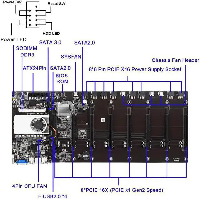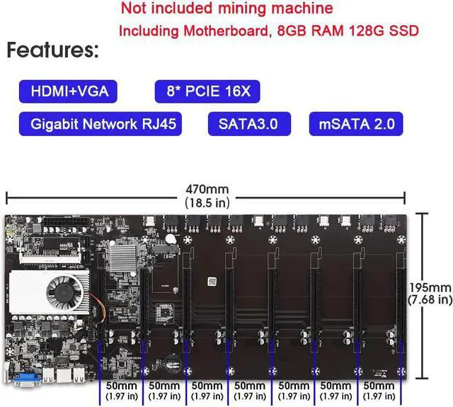 Size: 21.1 in* 9.76 in* 2.24 in Weight: 2.35 lb Low power consumption, less heat generation, energy-saving and safe use. Equipped with 8GB RAM and DDR3 memory socket, and 16 * 6pin PCIe x16 power socket.
