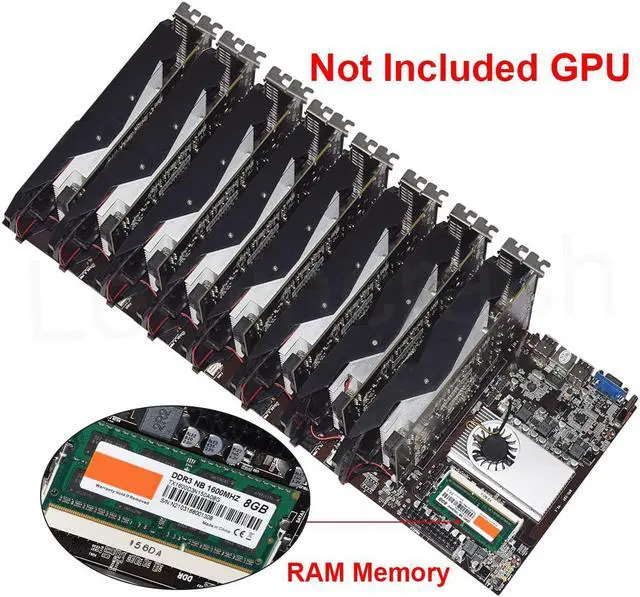 This product is a mining machine motherboard CPU set, low power consumption, less heat generation, energy-saving and safe use. 8 graphics card plug. 16x graphics card slot