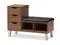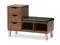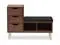 Simple and architectural, the Arielle 3-drawer shoe storage padded leatherette seating bench is reminiscent of modern and contemporary design. The Arielle’s clean and functional design features powder coated vinyl legs supporting the framework of the seating bench while providing storage drawers for hallway essentials. Three generous sized storage drawers and two open shelves are built in providing storage solution to keep your entryway or hallway clutter free. Crisp, clean lines and finger grooves drawers give the shoe bench an effortless character and charm. The shoe storage bench, constructed of engineered wood and finished in walnut finishing will match with your modern interior decor. The Arielle bench, padded in foam and upholstered in faux leather, could be placed in your living room or entryway as shoe storage bench or seating bench. Made in Malaysia, the Arielle requires assembly.