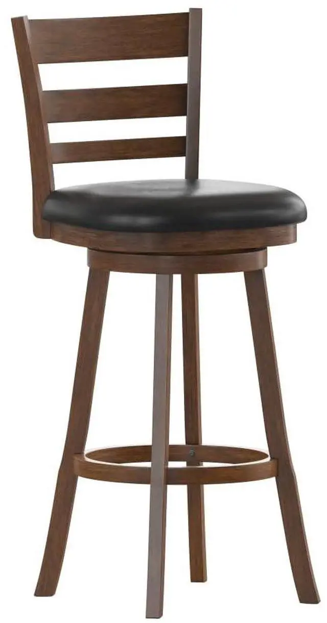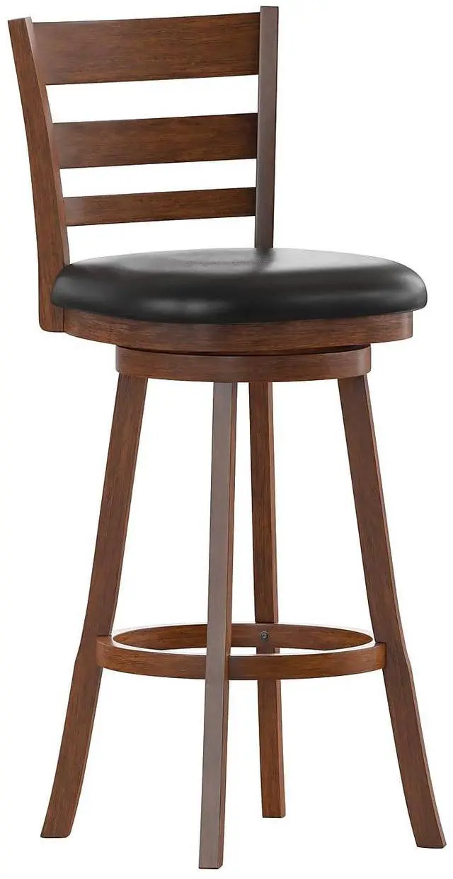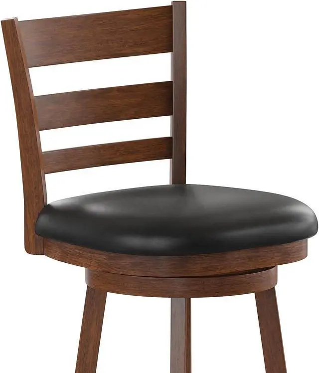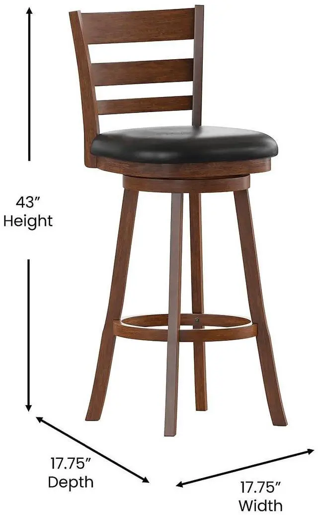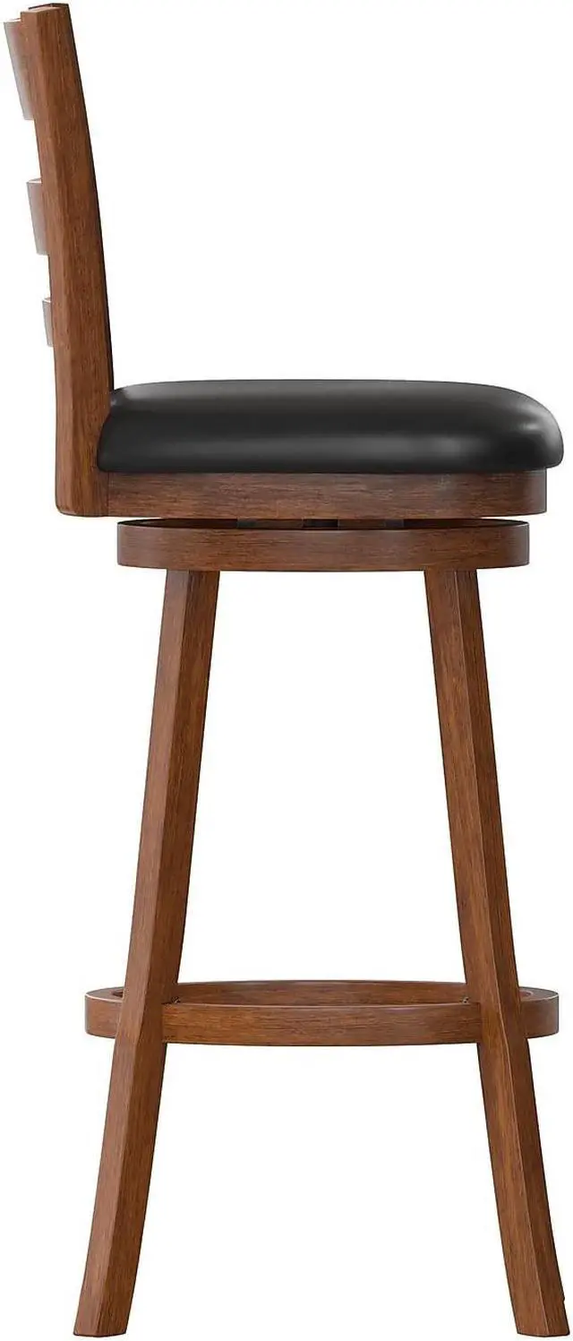 - Classic Commercial Ladderback Swivel Bar Height Stool with LeatherSoft Seat.