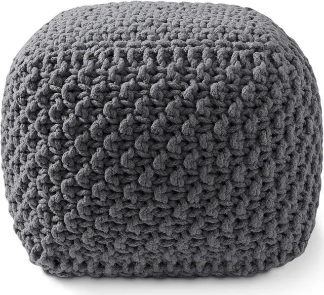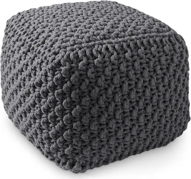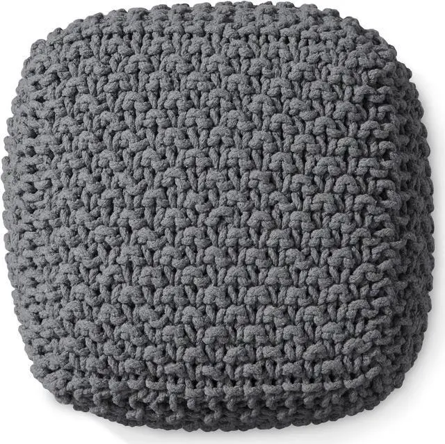 Casafield Square Pouf Ottoman, Dark Gray 18.5" W x 18.5" D x 14.5" H Cotton Knit Foot Stool - Boho Floor Pouffe for Living Room, Bedroom, Home Office