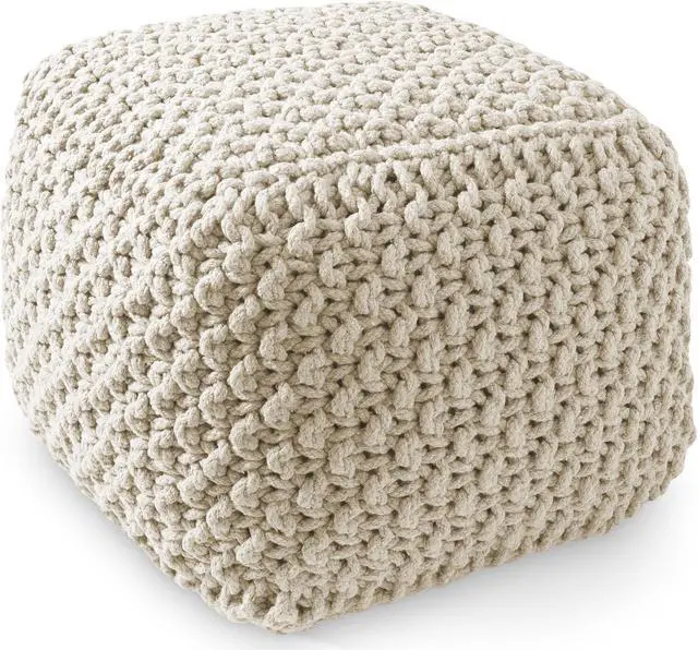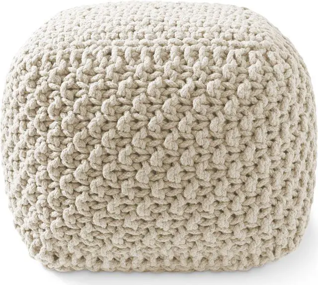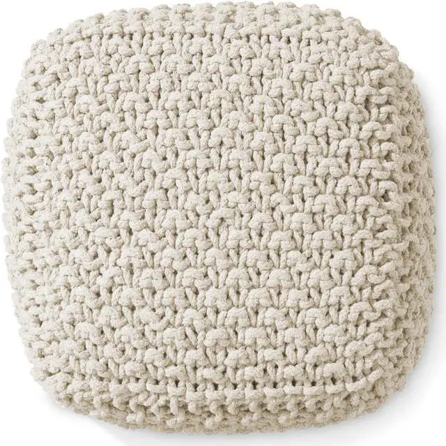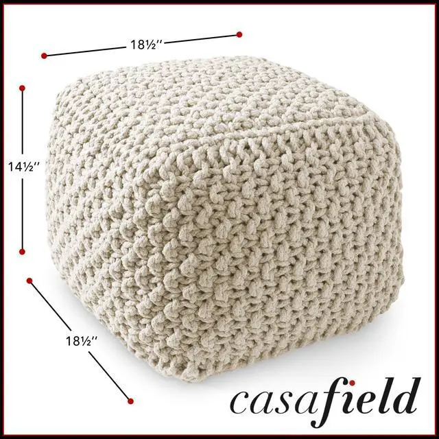 Casafield Square Pouf Ottoman, Natural - 18.5" W x 18.5" D x 14.5" H Cotton Knit Foot Stool - Boho Floor Pouffe for Living Room, Bedroom, Home Office