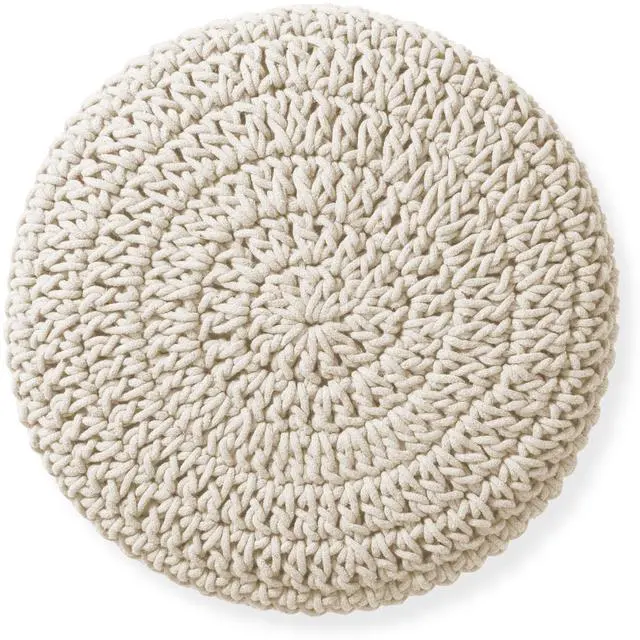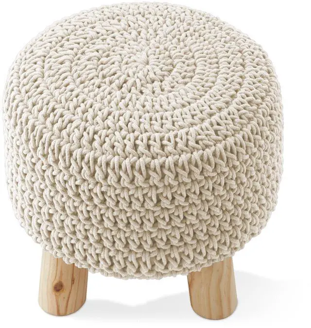 Each boho ottoman features a 100% cotton handknitted cover, creating rich texture and visual interest. The cotton is soft-to-the-touch yet durable, resisting wear while elevating your decor. At the base, non-skid solid wood legs ensure a stable platform when you rest your feet, or sit, as it holds up to approximately 250lbs.