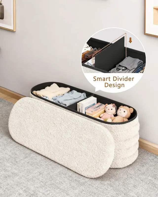 This multi-functional bedroom storage bench can not only be used as a footstool, but also serve as an ottoman, coffee table, side table or entryway shoe changing bench. The stylish oval shape and one-piece design is safer and especially suitable for families with children.