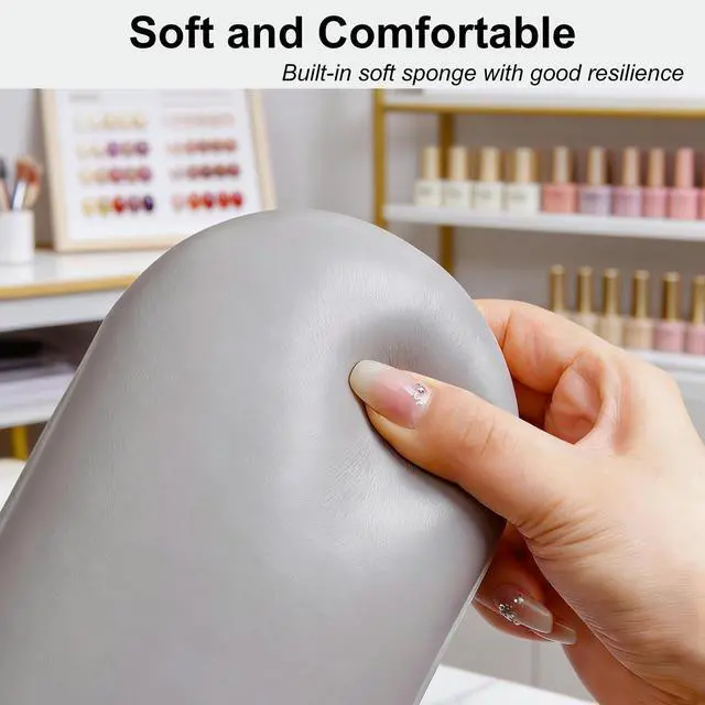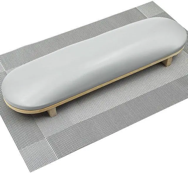 Arm Rest for Nails Tech with Table Mat, Nail Hand Rest Pillow for Manicure, PU Leather Nail Armrest Cushion Stand Holder with Wooden Base - Grey