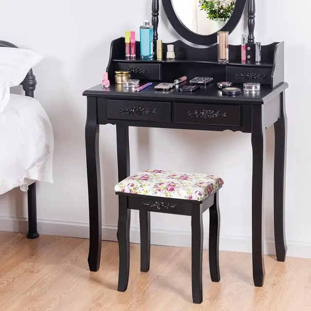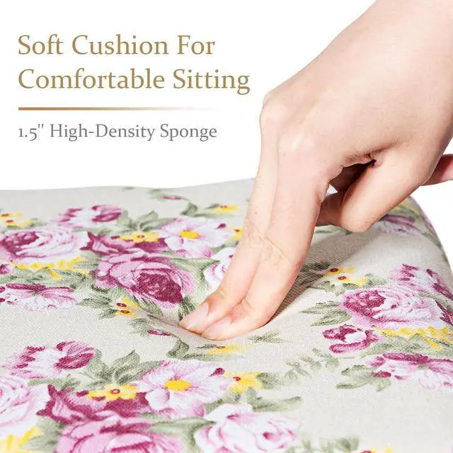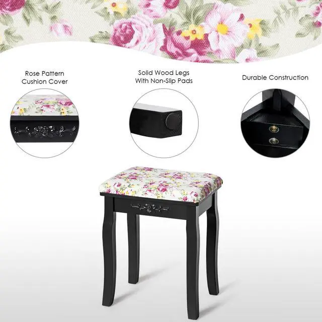 Our premium quality stool will be loved by people for its curved design and romantic rose cushion. Be made of MDF and Pine wood, this dressing stool is sturdy and sturdy. The thick cushion provides comfortable seat for you when dressing. The slightly curved legs and attractive cover with glamour rose pattern forming a sophisticated look. You can put all your clothes for the next working day on the stool or just sit comfortably in front of the vanity desk to do your make-up or style your hair, or using it as a piano stool on the performance stage. With its simple and elegant design, it can be easily match with any rooms whatever contemporary, modern, young or even classy. Do not hesitate to buy