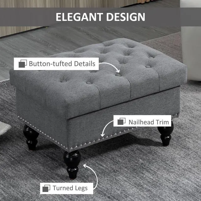 Elegant Design: This living room ottoman with storage has an attractive studded trim edging and tufted button top for a classic style that will elevate the décor in your home.