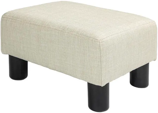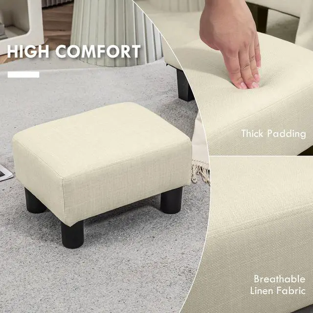 Ottoman Foot Rest, Small Foot Stool with Linen Fabric Upholstery and Plastic Legs, Cube Ottoman for Living Room, Beige