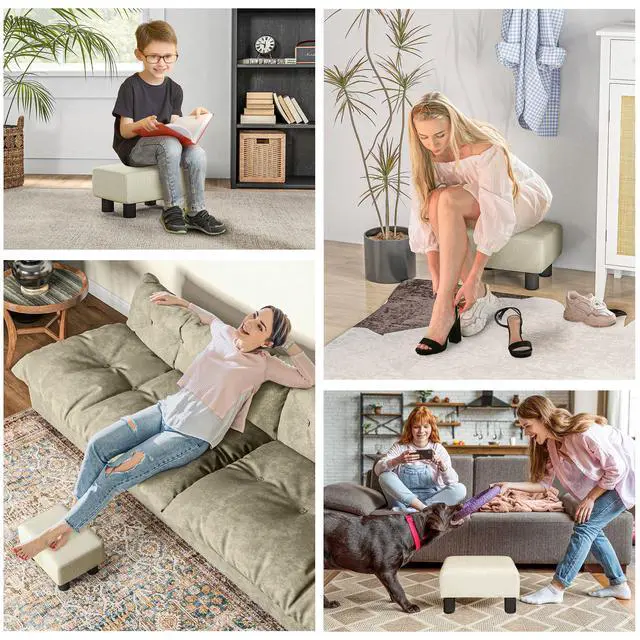 Designer Style: Enhance the look of your home with our stylish and sophisticated small ottoman footrest. It features a rectangular frame and is upholstered in a color that matches your home's existing decor.