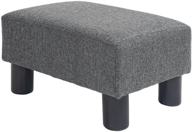 Ottoman Foot Rest, Small Foot Stool with Linen Fabric Upholstery and Plastic Legs, Cube Ottoman for Living Room, Charcoal Gray