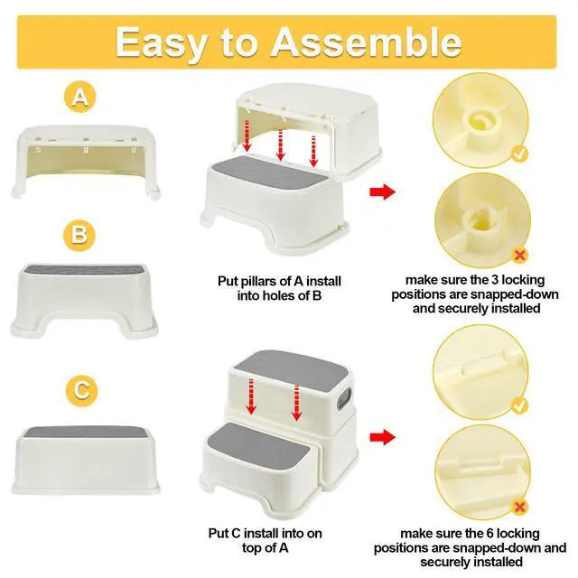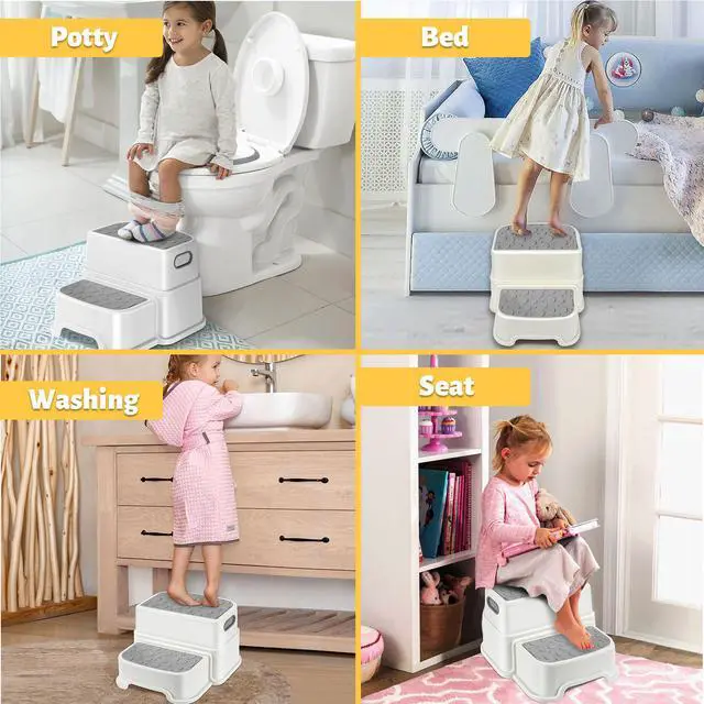Give your child the confidence to explore their worldsafely and independentlywith the WELSPO Kids' Step Stool. Thoughtfully designed with high-density plastic and non-slip rubber strips, it offers rock-solid stability and supports up to 170 lbs, making every step secure on bathroom tiles, kitchen floors, and beyond. Its compact, space-saving profile (just 9.25" tall) fits perfectly in tight spots like beside the toilet or sink, while the built-in handle lets little ones carry it with ease. More than just a stool, its a versatile companion for potty training, handwashing, toothbrushing, reading time, or slipping on shoesgrowing with your child through everyday milestones. Assembly is a breeze: simply connect three interlocking pieces in minutes, and cleaning is as easy as a quick wipe or rinse. CPC certified and crafted with care, its not just a practical toolits a meaningful gift of independence that empowers your child to do more, all on their own.