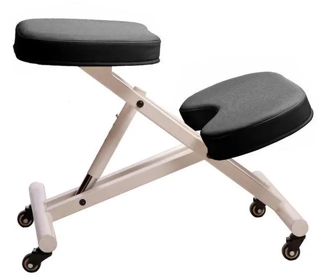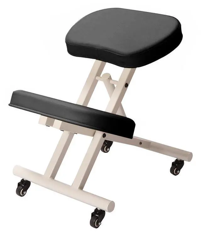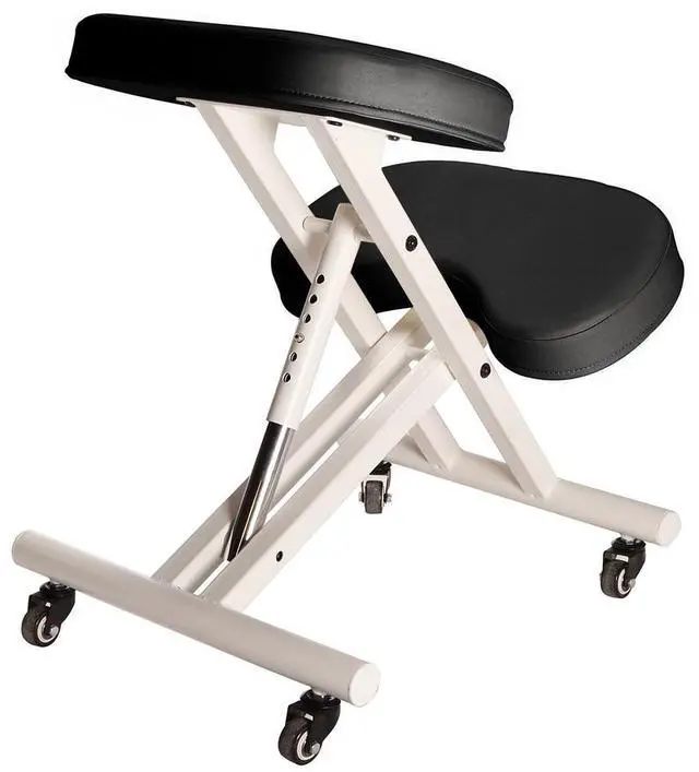 Improve your posture and end your back pain with Modern Home's Deluxe Adjustable Posture Chair. Designed to strengthen your core, increase your productivity and keep proper blood flow while working, our posture chair will re-position your body in a way that boosts muscle strength while your work. Constructed on a steel frame with soft vinyl covered cushioned seats, the posture chair places you into a kneeling position while your bottom and knees rest on extra thick cushioned pads. It frees your upper body and forms your torso into an upright position thereby taking pressure off your lumbar region.