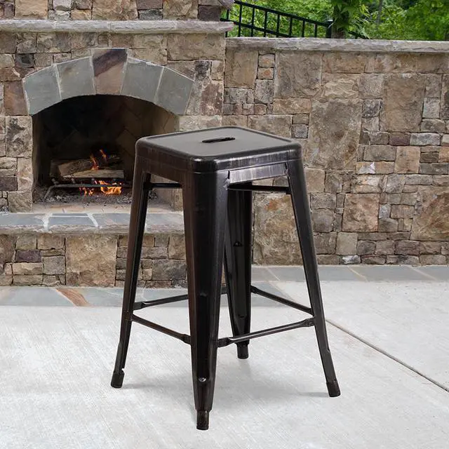 Upgrade the seating in your restaurant, eatery or home with this colorful counter stool with growing popularity. This space-saving stool is stackable making it great for storing. This stool features a backless, lightweight design that allows easy movement from inside areas to the patio or sidewalk to enjoy nice weather. A cross brace underneath the seat adds extra stability and features plastic caps that prevent the finish from scratching when stacked. The legs have protective floor glides that prevent damage to flooring. This all-weather use stool is great for indoor and outdoor settings.