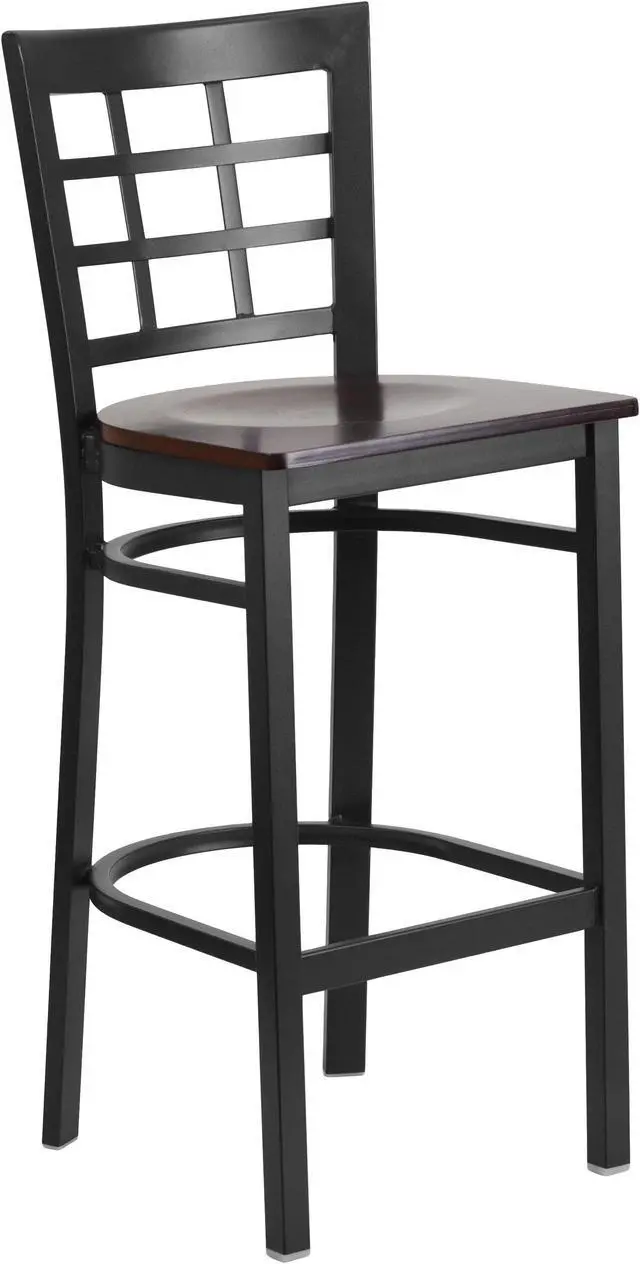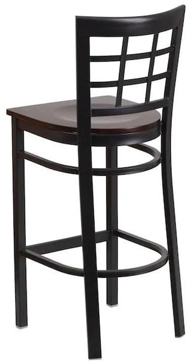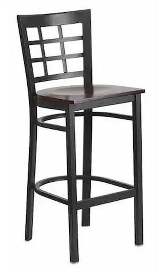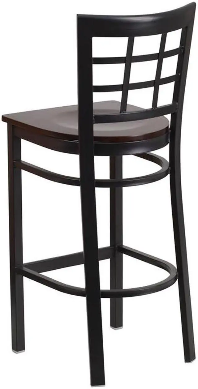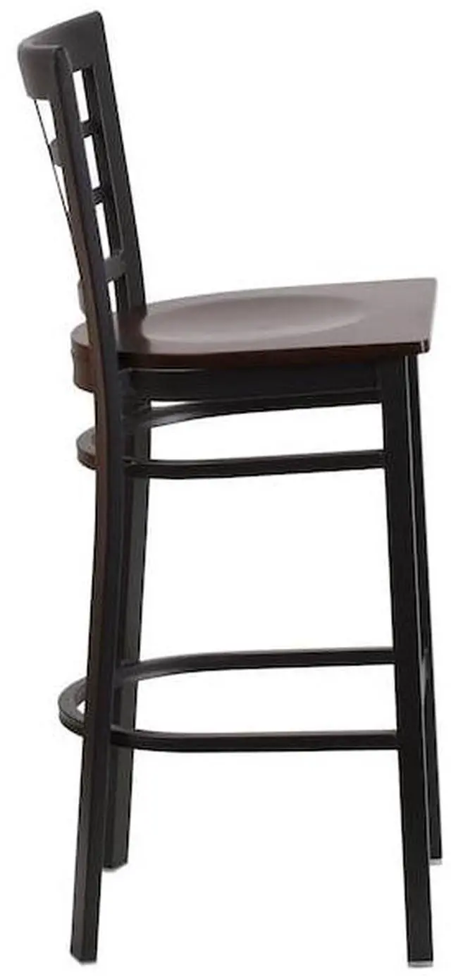 Create a first-rate dining experience by offering your patrons great food, service and attractive furnishings. Metal barstools are a popular choice for furnishing restaurants, pool halls, lounges, bars and other high traffic establishments. This window back metal restaurant barstool is easy to clean, which is an important aspect for a business. Built to withstand the everyday use in the restaurant and hospitality business, these dining stools will also look great in your home. The beautiful walnut wood seat will keep guests comfortable. The frame is stabilized using two welded support bars, which includes a footrest to prevent leg discomfort.