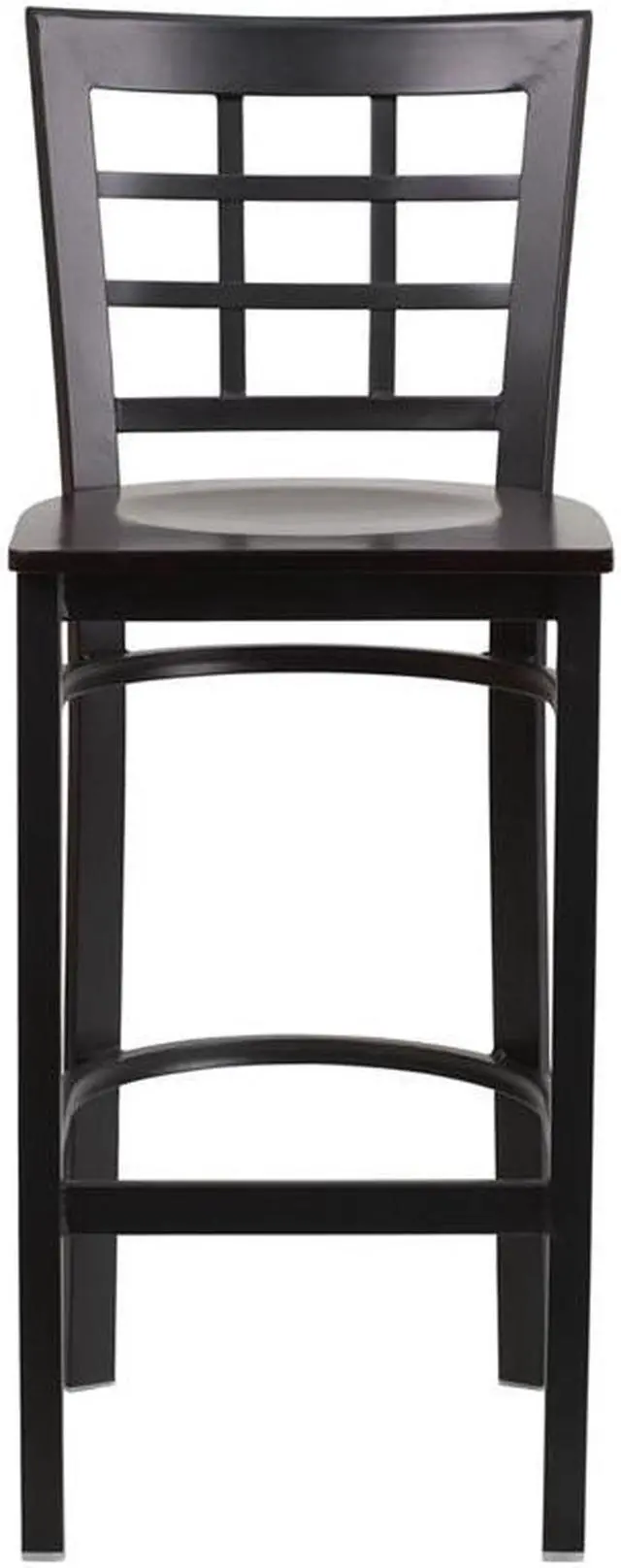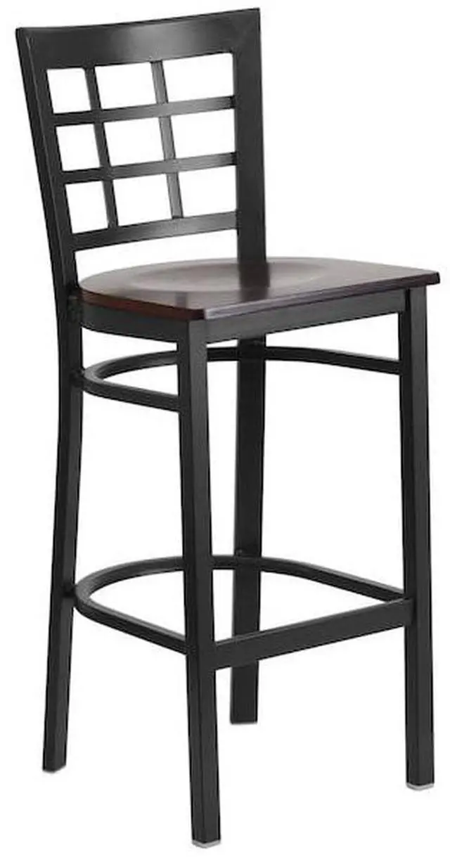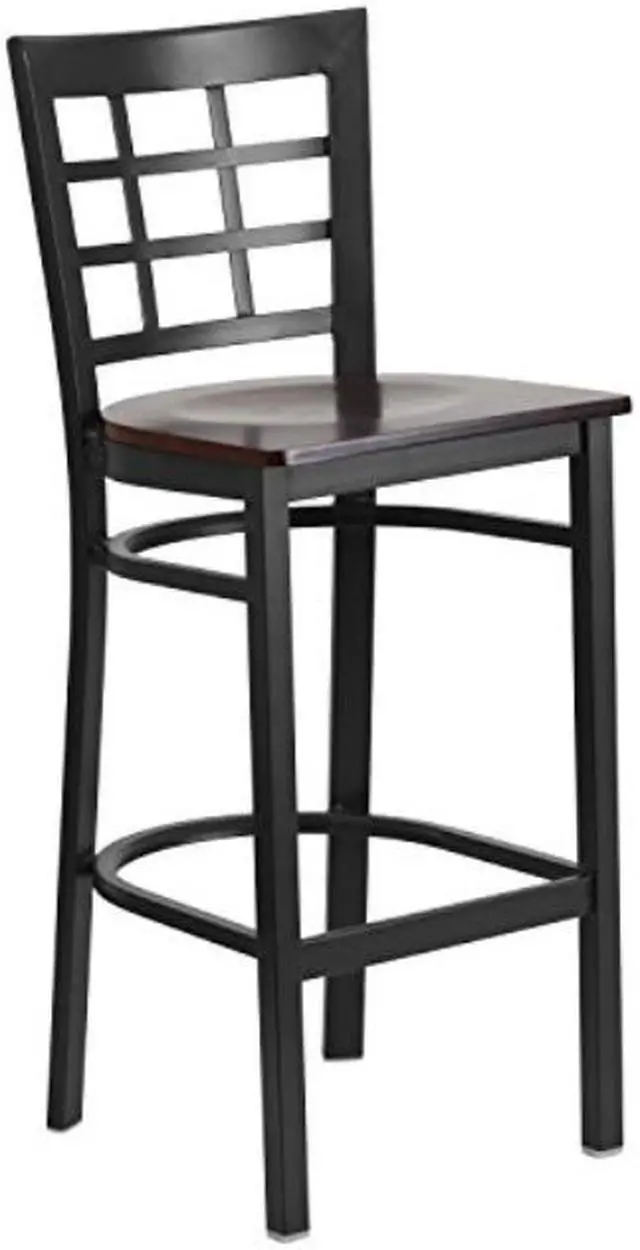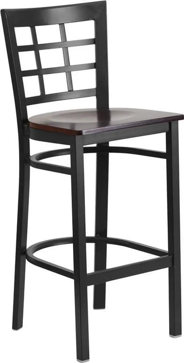 Create a first-rate dining experience by offering your patrons great food, service and attractive furnishings. Metal barstools are a popular choice for furnishing restaurants, pool halls, lounges, bars and other high traffic establishments. This window back metal restaurant barstool is easy to clean, which is an important aspect for a business. Built to withstand the everyday use in the restaurant and hospitality business, these dining stools will also look great in your home. The beautiful walnut wood seat will keep guests comfortable. The frame is stabilized using two welded support bars, which includes a footrest to prevent leg discomfort.