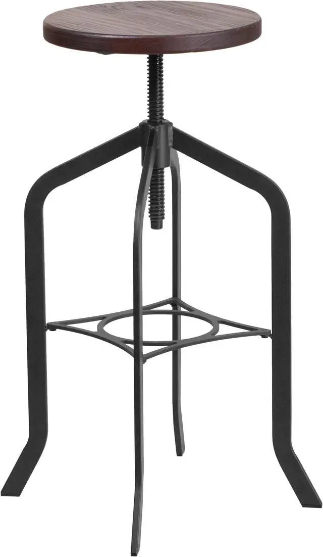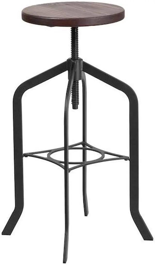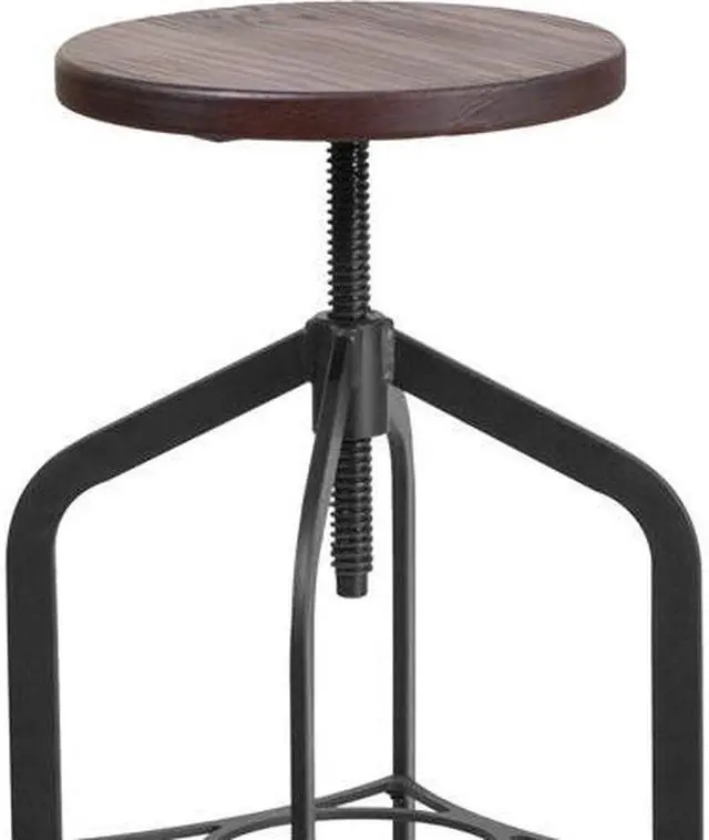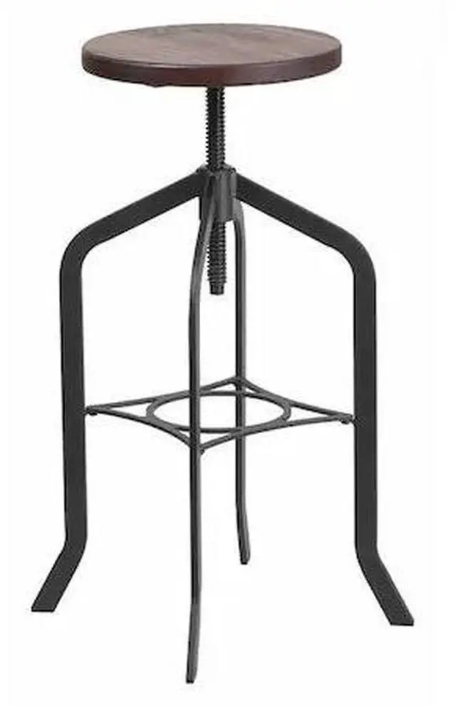 This rustic and industrial style stool will add a modern industrial appearance to your home, work space, or entertainment area. This stool boasts a wood seat and features a sturdy metal frame with a black powder coated finish that can be cleaned with a dry cloth. The swivel seat adjusts in height to accommodate different users. This stool sits on plastic protective floor glides to prevent scratching and help prevent damage to flooring. The unique design of this backless stool will completely transform the area.