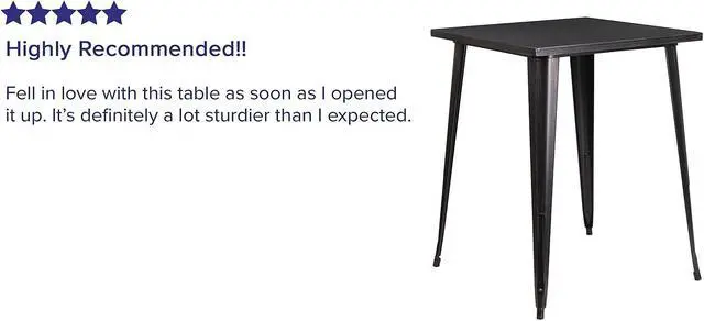 Create a vibrant, energetic dining space with this colorful industrial style bar height antique gold metal table. This lively table will add a retro-modern look to your home or business. Pair this table with like colored metal chairs for a uniform look or mix things up by adding different colored chairs. A thick brace underneath the top adds extra stability. The legs have protective rubber floor glides that prevent damage to flooring. This all-weather table is great for indoor and outdoor settings. For longevity, care should be taken to protect from long periods of wet weather. Great for both commercial and residential spaces, the decorating possibilities for this table are only limited by your imagination!.