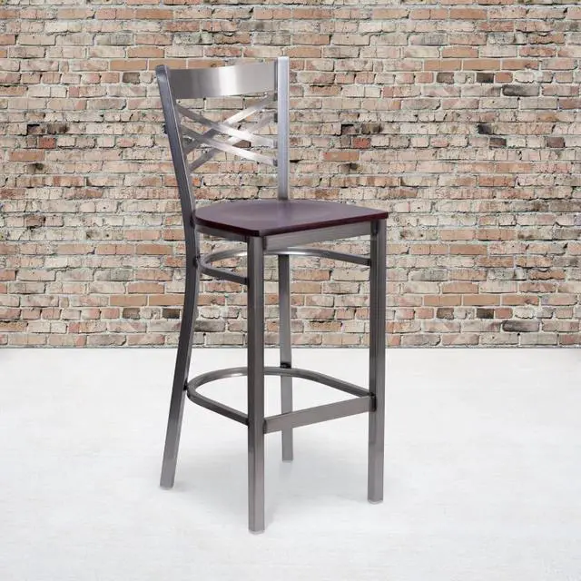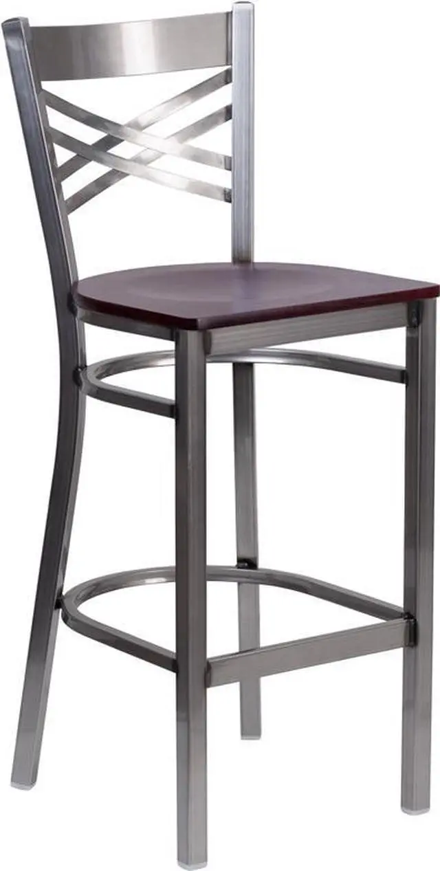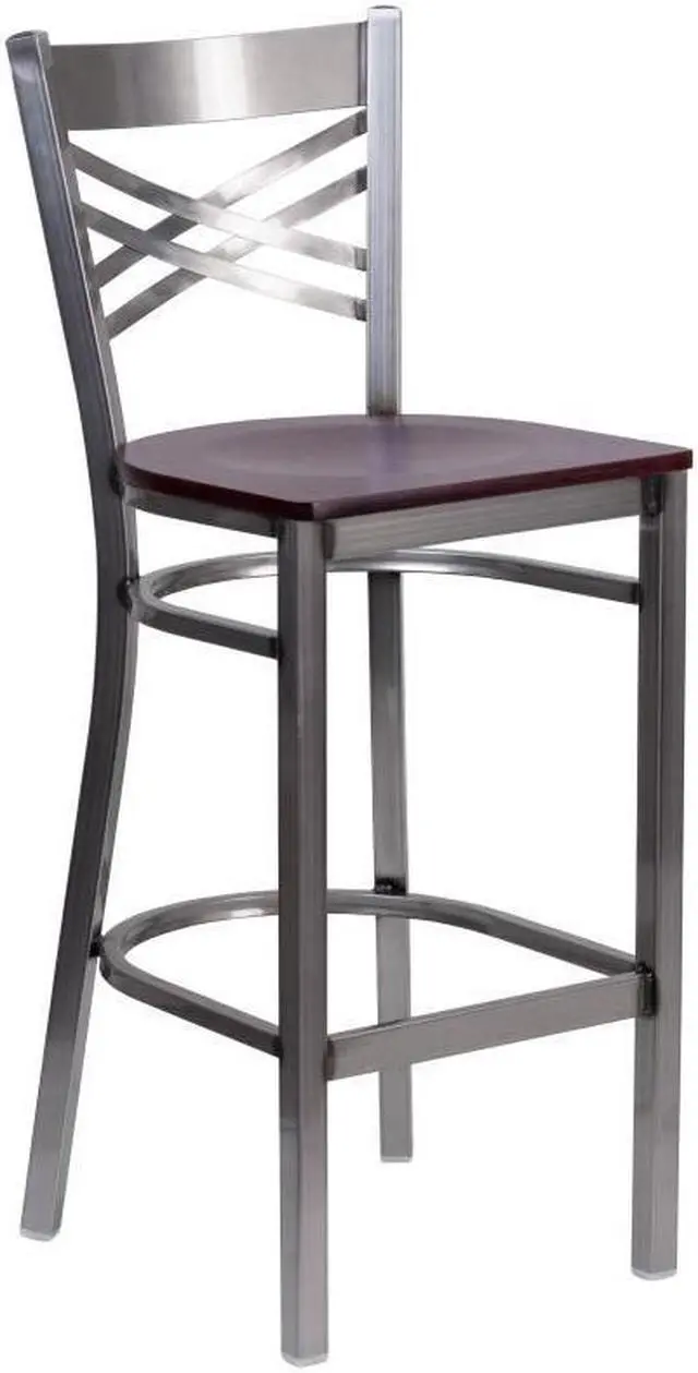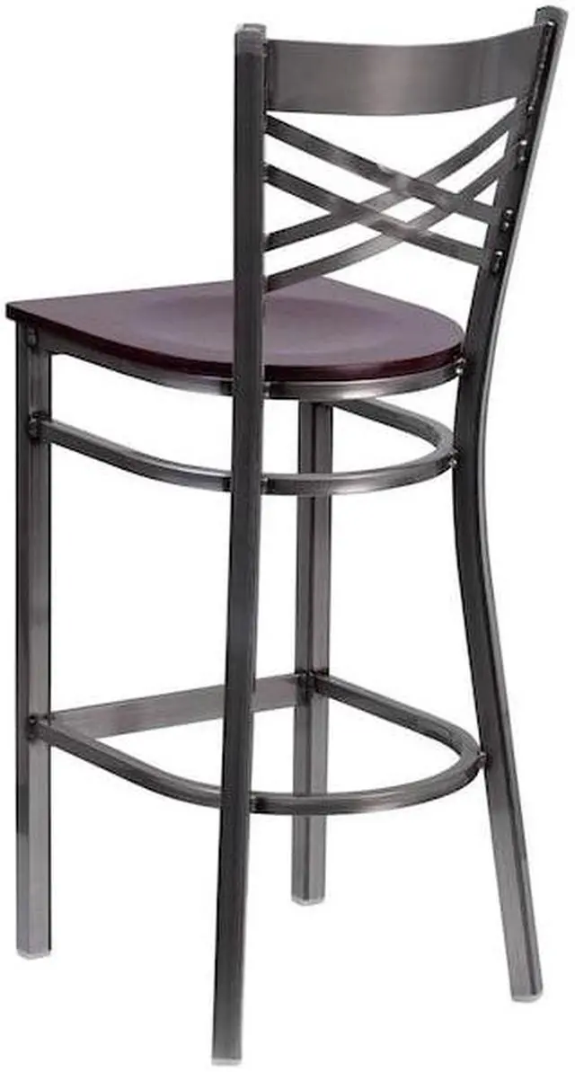 Create a first-rate dining experience by offering your patrons great food, service and attractive furnishings. Metal bar stools are a popular choice for furnishing restaurants, lounges, pool halls, bars and other high traffic establishments. This stool is easy to clean, which is an important aspect when it comes to a business. Built to withstand the everyday hustle and bustle in the restaurant and hospitality business, these dining stools will also look great in your home. The beautiful wood seat and "X" back design will keep guests comfortable. The frame is stabilized using welded joint assembly and two curved support bars which includes a footrest to improve posture.