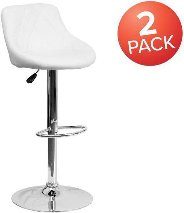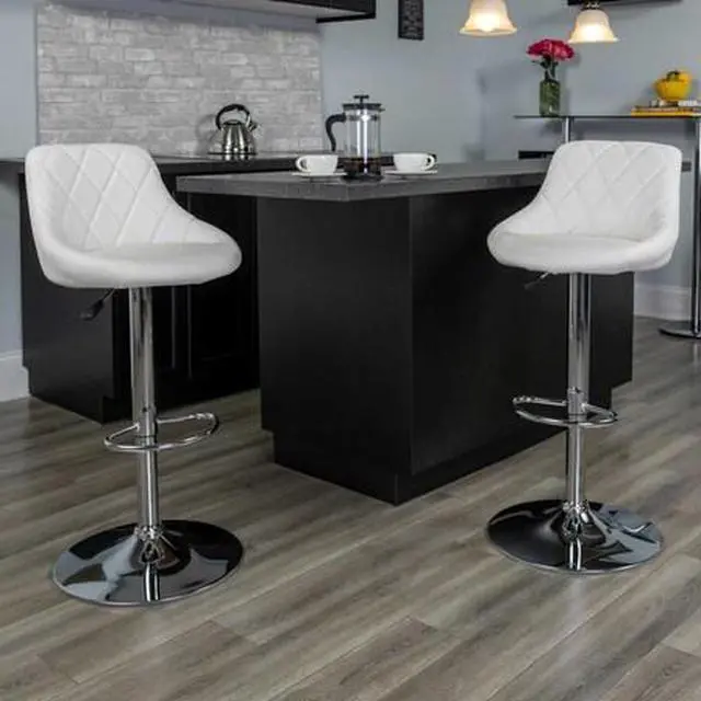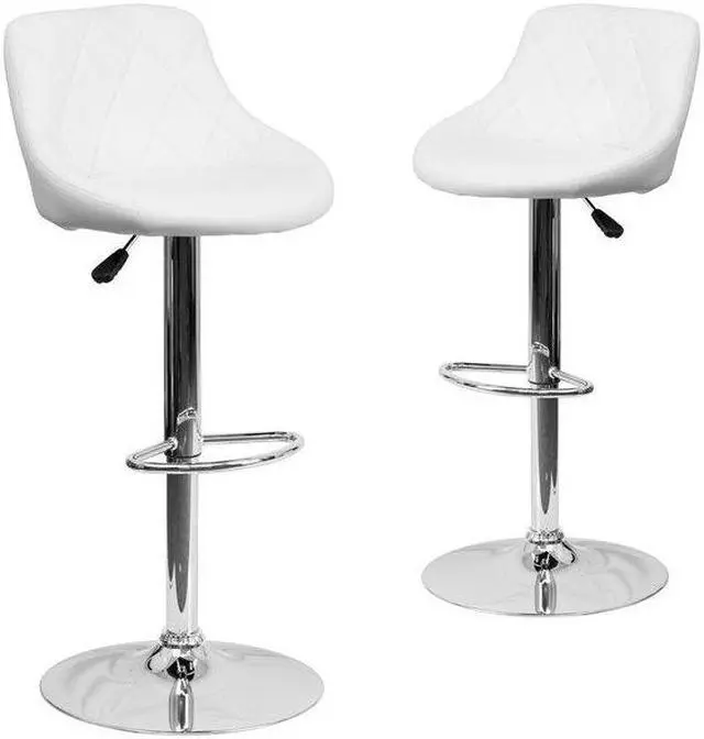 This dual purpose stool easily adjusts from counter to bar height. The bucket seat design will make this a great accent chair around the bar area or kitchen. The easy to clean vinyl upholstery is an added bonus when stool is used regularly. The height adjustable swivel seat adjusts from counter to bar height with the handle located below the seat. The chrome footrest supports your feet while also providing a contemporary chic design.