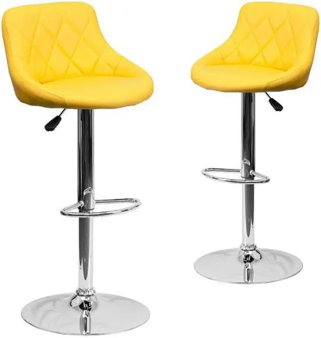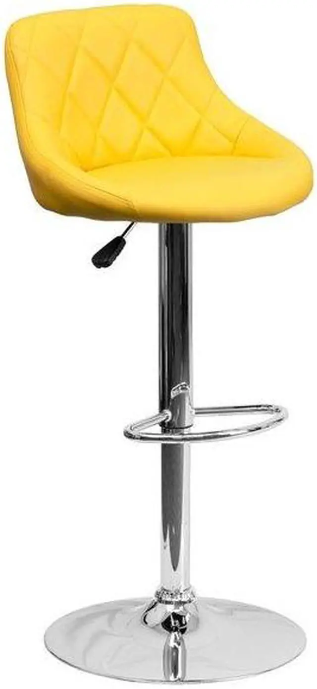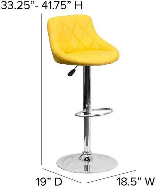 This dual purpose stool easily adjusts from counter to bar height. The bucket seat design will make this a great accent chair around the bar area or kitchen. The easy to clean vinyl upholstery is an added bonus when stool is used regularly. The height adjustable swivel seat adjusts from counter to bar height with the handle located below the seat. The chrome footrest supports your feet while also providing a contemporary chic design.