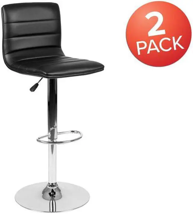 This modern barstool is upholstered in a durable vinyl upholstery and adjusts from counter to bar height. This armless design is gracefully contoured for your comfort. The height adjustable swivel seat adjusts from counter to bar height with the handle located below the seat. The chrome footrest supports your feet while also providing a contemporary chic design.