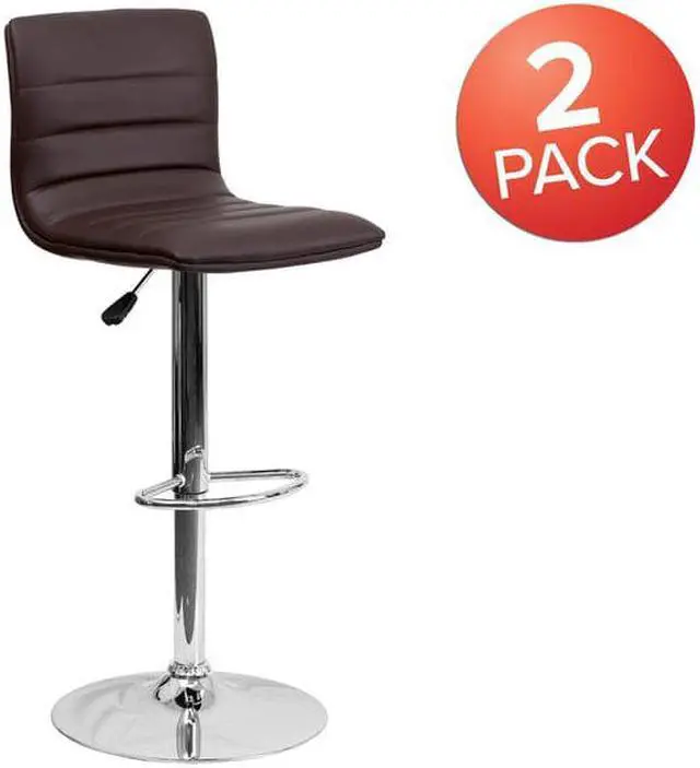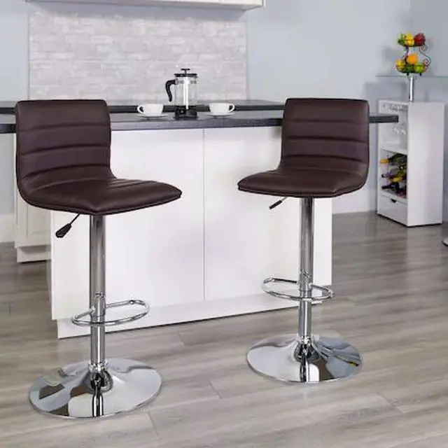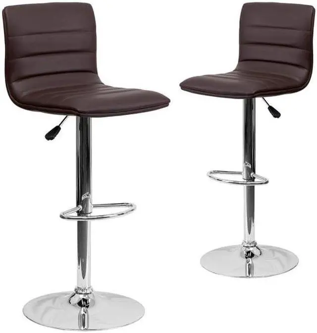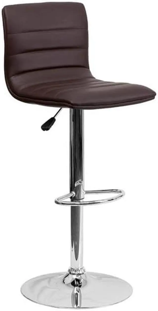 This modern barstool is upholstered in a durable vinyl upholstery and adjusts from counter to bar height. This armless design is gracefully contoured for your comfort. The height adjustable swivel seat adjusts from counter to bar height with the handle located below the seat. The chrome footrest supports your feet while also providing a contemporary chic design.