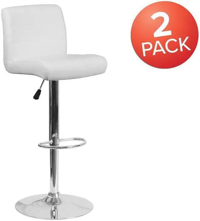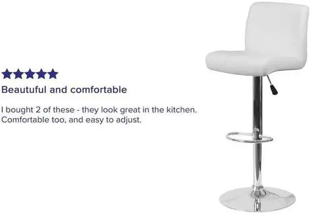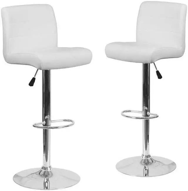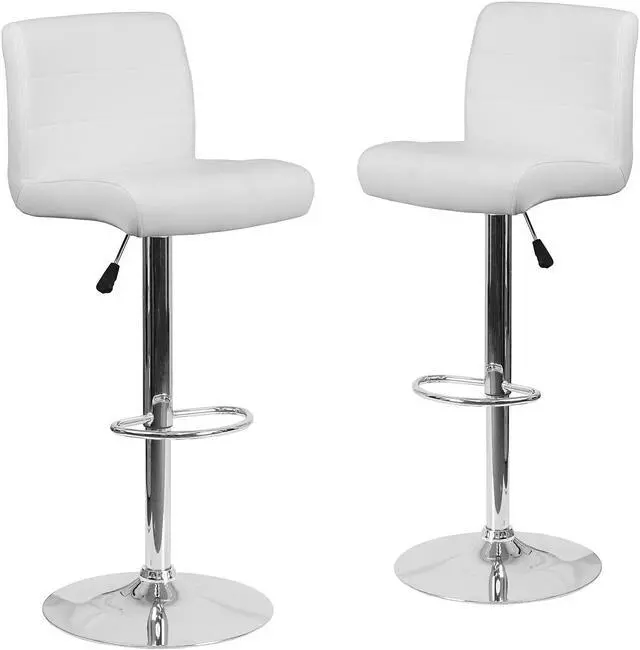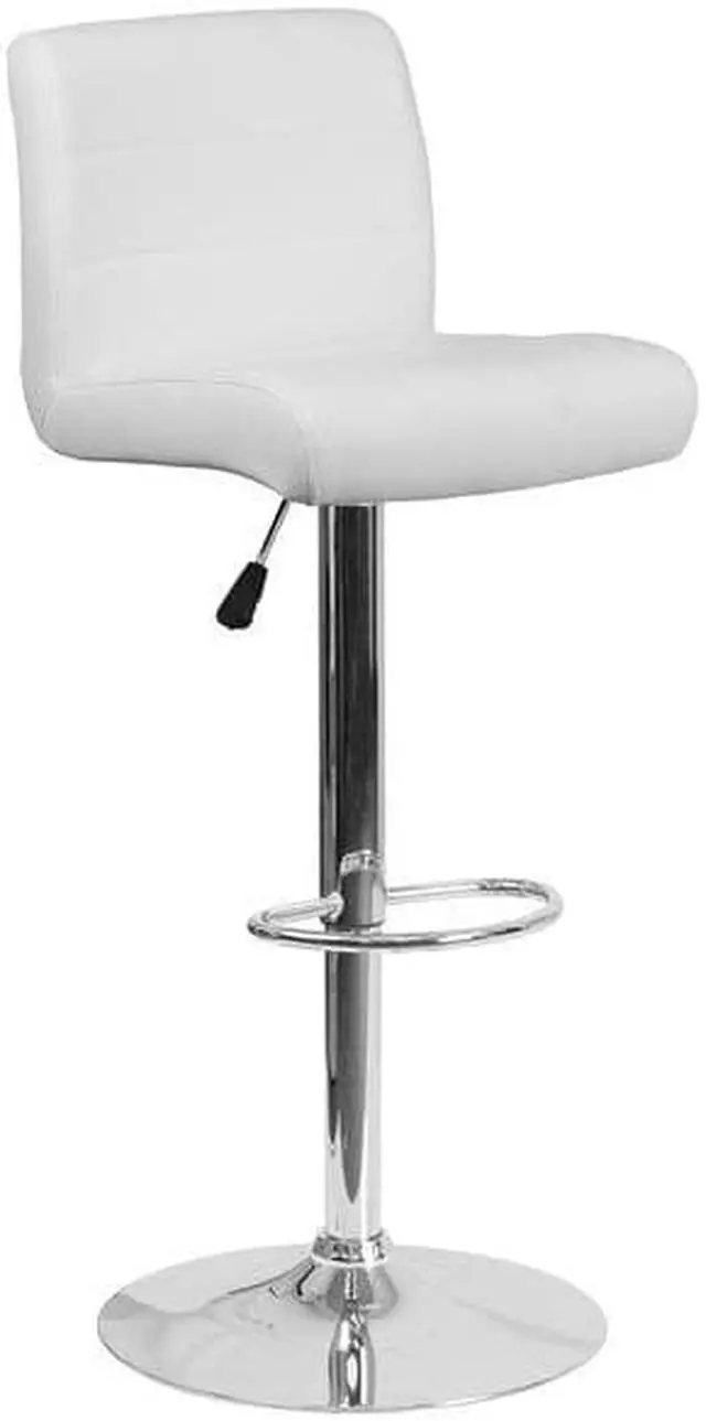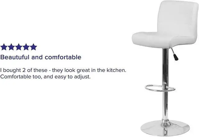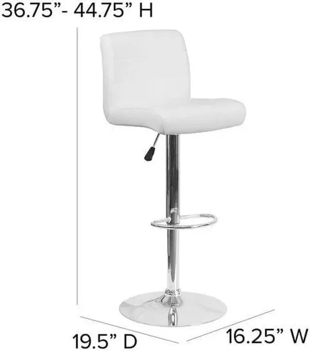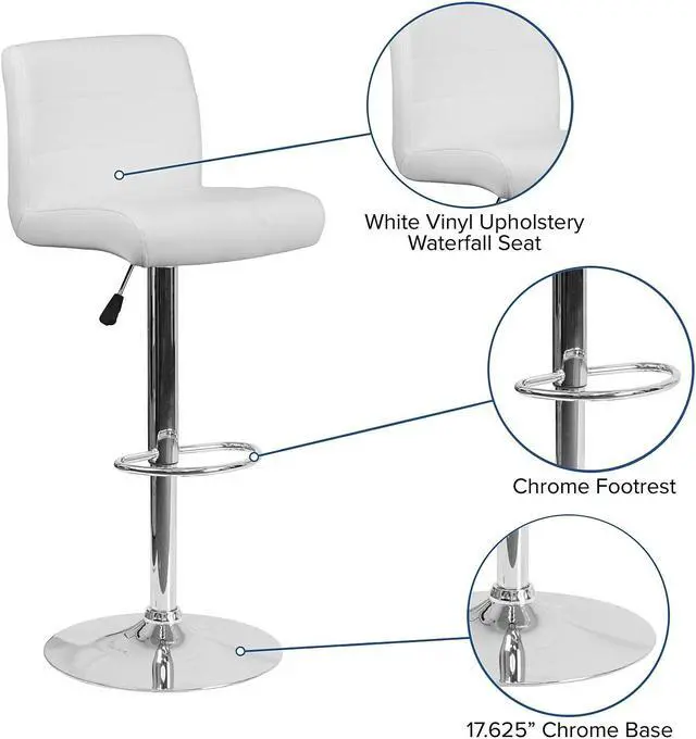 This sleek dual purpose stool easily adjusts from counter to bar height. This stylish stool provides added comfort with the waterfall front seat, which is designed to remove pressure from the lower legs and improves circulation. The easy to clean vinyl upholstery is an added bonus when stool is used regularly. The height adjustable swivel seat adjusts from counter to bar height with the handle located below the seat. The chrome footrest supports your feet while also providing a contemporary chic design. To help protect your floors, the base features an embedded plastic ring.