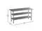 Undershelf Size: 41.25"W x 16.125"D x 4"-28"HProduct Dimensions: 60"Wx24"Dx34.5"H. Fixed Table Top Thickness Fixed: 1.88". Shelf Size: 53.25"W x 16.13"D x 1.5"H. Fixed Leg: 1.75"Wx33.25"H. Fixed Leg Spacing: 51.75"Wx14.75"L. Metal Gauge Thickness: 18 Gauge. Number of Shelves: 2 Count. Weight Capacity: 600 lbs. Shelf Weight Capacity: 200 lbsColor: Stainless Steel. Material: Stainless SteelBase Style: 4 Leg. Frame Color: SilverFrame Material: Stainless Steel. Style: Contemporary. Table Top Material: Metal. Table Top Color: Silver. Table Shape: Rectangle
