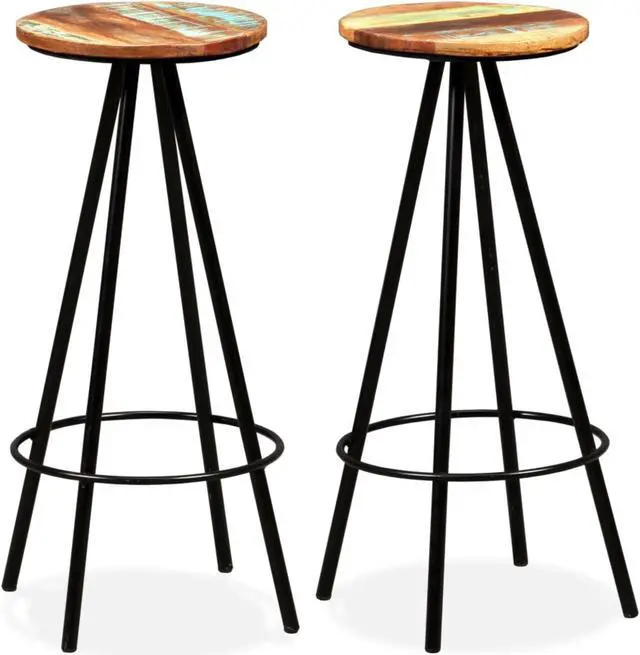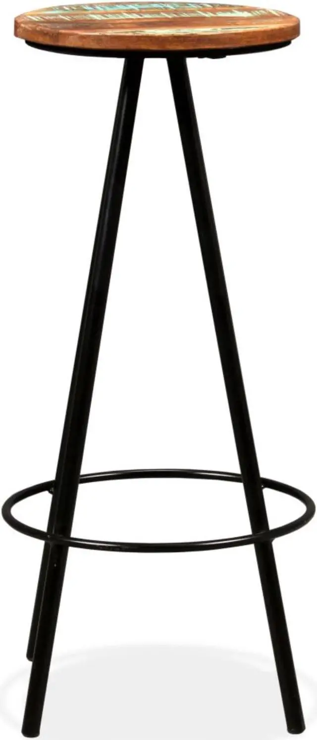 The bar stools are made of solid reclaimed wood, which means that they have the characteristics of different woods like teak, mango wood, acacia, etc. Reclaimed wood is solid, stable, durable and beautiful. Signs of wear give each piece a unique look and the steel frames add to the spectacular industrial style. Every step of the construction process is carried out with the greatest care, be it recombining, polishing, painting or lacquering. Assembly is easy. Delivery includes 2 bar stools.