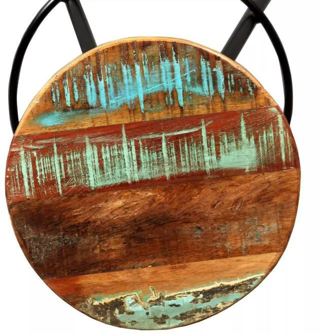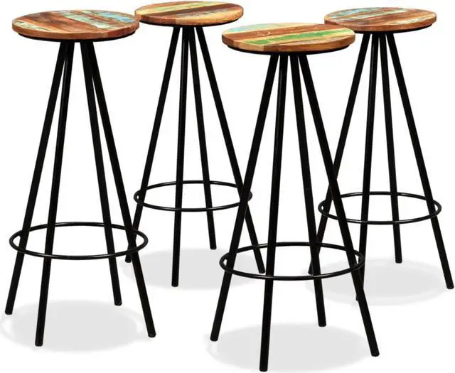 The bar stools are made of solid reclaimed wood, which means that they have the characteristics of different woods like teak, mango wood, acacia, etc. Reclaimed wood is solid, stable, durable and beautiful. Signs of wear give each piece a unique look and the steel frames add to the spectacular industrial style. Every step of the construction process is carried out with the greatest care, be it recombining, polishing, painting or lacquering. Assembly is easy. Delivery includes 4 bar stools.