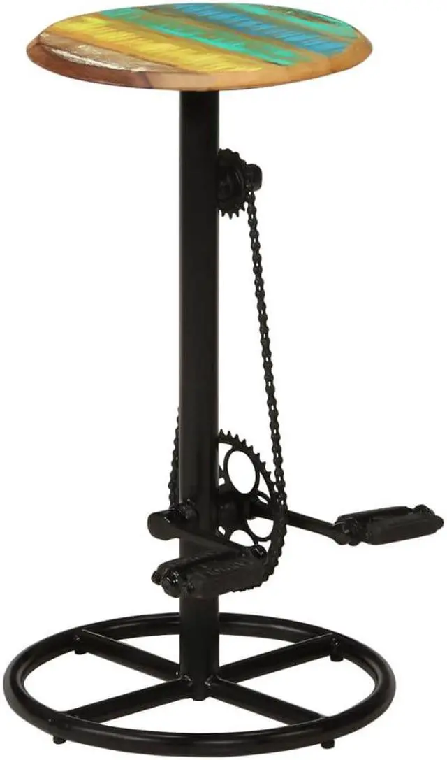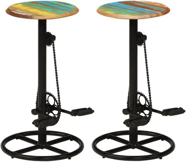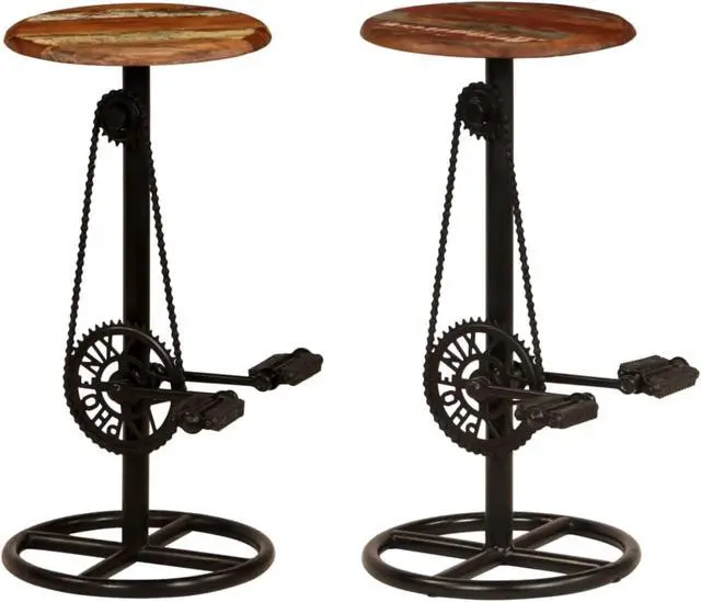 This set of 2 bar chairs will make a timeless addition to your kitchen and dining room decor. The bar stools are made of solid reclaimed wood and steel and are highly stable and durable. Reclaimed wood is sourced from joists, floors and support beams from old buildings being demolished, and can consist of different types of wood like sheesham (rosewood), pine, teak, beech, oak, cedar, mango wood, acacia, etc. This means the reclaimed wood retains the characteristics of these different types of wood. Reclaimed wood is already aged, weathered and dried, so it doesn't shrink or bend.