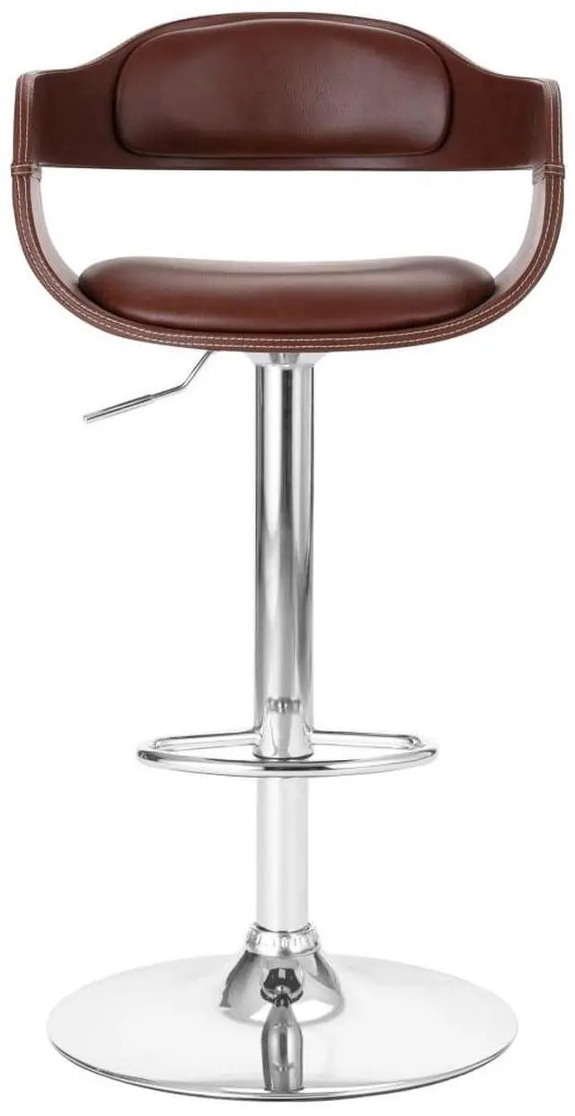 The chair is upholstered in easy-to-clean faux leather to provide optimum comfort. The plywood frame adds chair's unique beauty and style. The chromed metal base delivers high sturdiness, and the built-in footrest adds additional seating enjoyment. These counter chairs are very comfortable to sit on for hours. The gas lift mechanism allows you to adjust the height of the bar chair. This bar chair is a perfect addition to any functional bar or dining area.