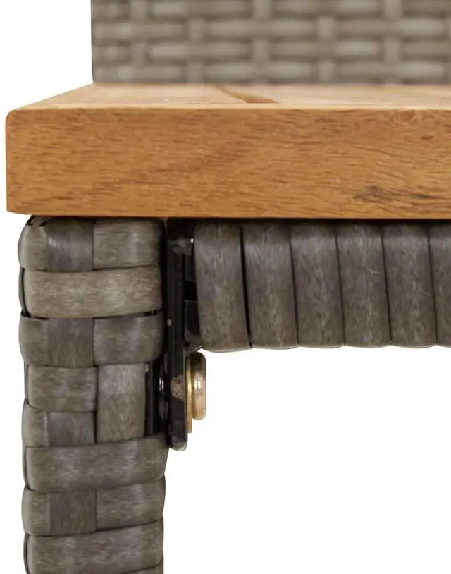 Material: PE rattan, powder-coated steel, solid acacia wood with a natural finish
