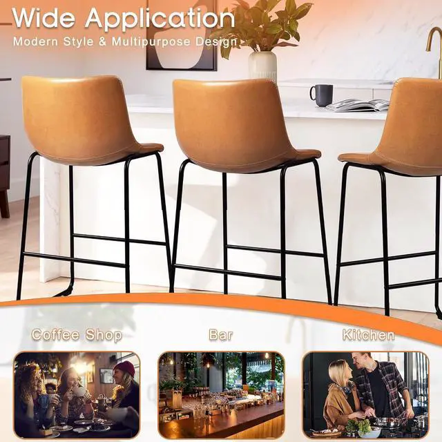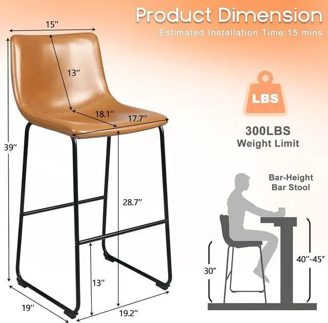Bossin bar stools brings a rustic vintage feel to your new room décor, making any standard-height counter a place for dining and drinks. Features Crisp, clean lines give this set of two stools a modern appeal that's right at home in most any home setting. Thick layers of foam cushioning cover the circular form, and a high-grade PU faux leather is used for the upholstery. The sleigh-style legs offer a minimal form with exceptional strength and an integrated footrest.