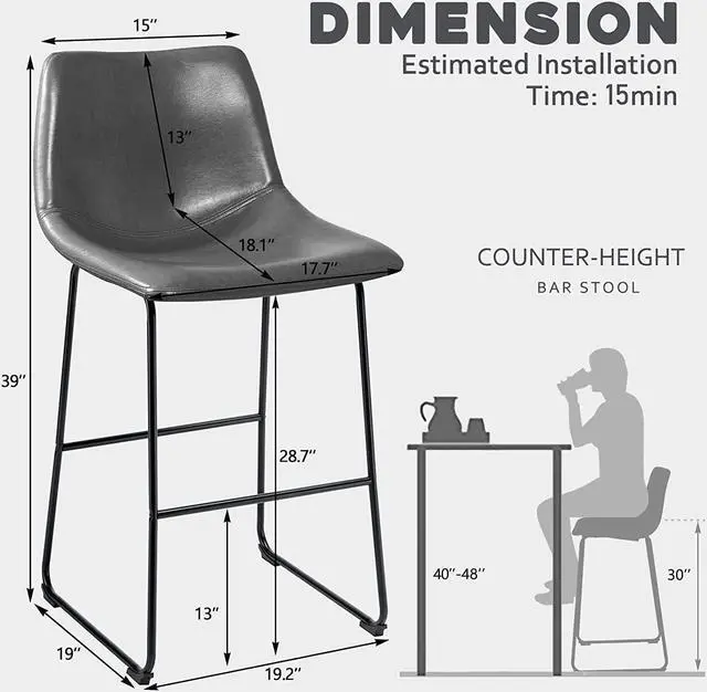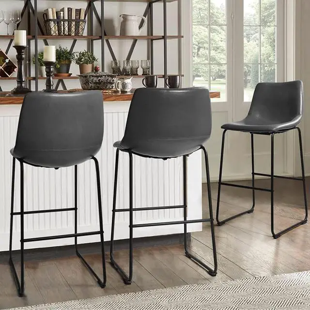 Bossin bar stools brings a rustic vintage feel to your new room décor, making any standard-height counter a place for dining and drinks. Features Crisp, clean lines give this set of two stools a modern appeal that's right at home in most any home setting. Thick layers of foam cushioning cover the circular form, and a high-grade PU faux leather is used for the upholstery. The sleigh-style legs offer a minimal form with exceptional strength and an integrated footrest.