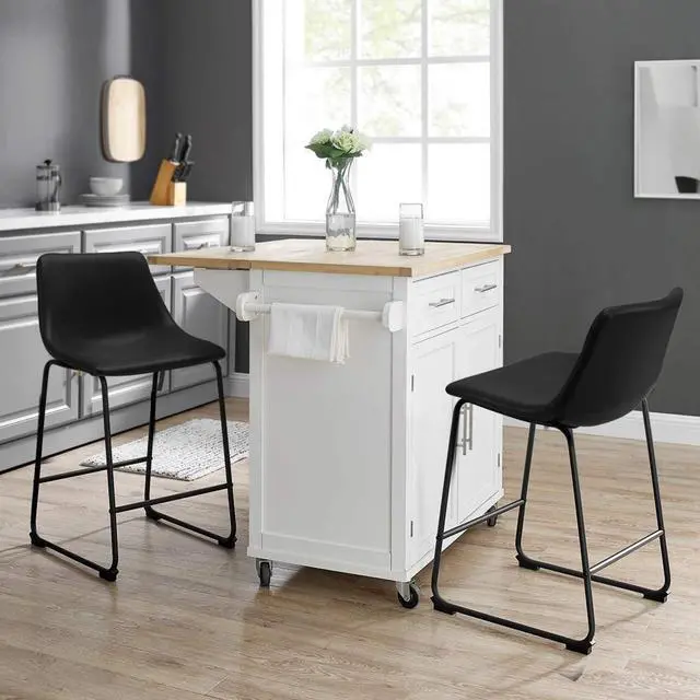 Bossin bar stools brings a rustic vintage feel to your new room décor, making any standard-height counter a place for dining and drinks. Features Crisp, clean lines give this set of two stools a modern appeal that's right at home in most any home setting. Thick layers of foam cushioning cover the circular form, and a high-grade PU faux leather is used for the upholstery. The sleigh-style legs offer a minimal form with exceptional strength and an integrated footrest.