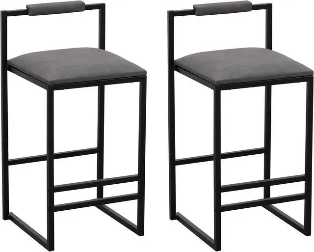 2 Sets Bar Stools PU Upholstered Bar Chairs Saddle Stools with Footrest for Bar, Kitchen, Living Room Farmhouse Island Chairs Metal Frame Base (Grey with Back)