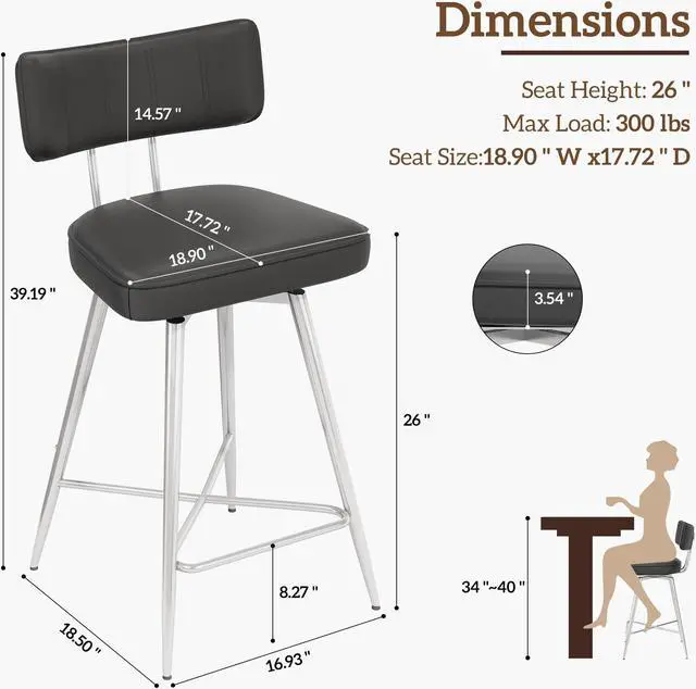 Seat: 18.9"W x 17.72"D, 26" seat height.