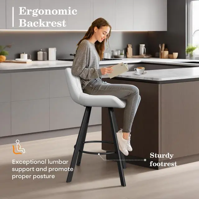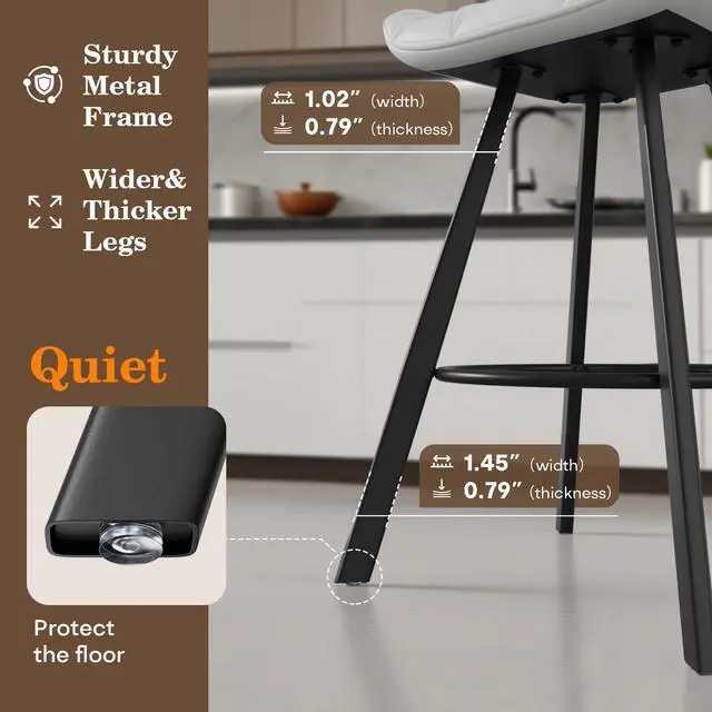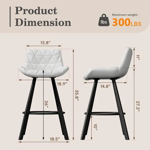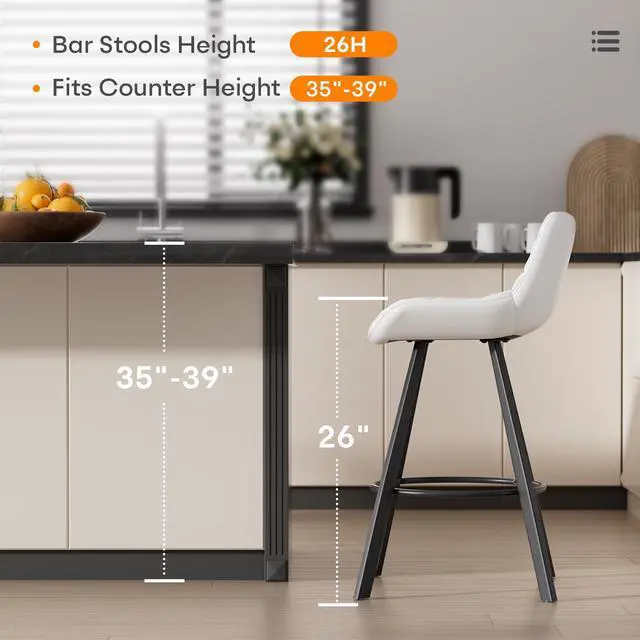 Upgrade your home kitchen or dining space with this counter height bar stools set of 3, designed for both comfort and style. Featuring a 26 inch seat height, these bar chairs are ideal for kitchen islands and counters between 35 and 39 inches tall. The seats are upholstered in high-quality faux leather, available in black, white, and brown, with elegant diamond stitching that adds a modern, mid-century flair. Each low back bar stool includes a strong metal frame, supportive legs, and an integrated footrest, offering ergonomic comfort and stability.