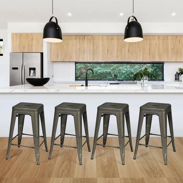 Modern & Vintage to Fit Anywhere: Using the aesthetic design of modern industry with the gun-colored metal surface brings a noble, luxurious and elegant feeling. Tapered legs, a mental seat, and a rounded back frame to make for a comfortable, yet stylish chair are perfect for any space such as kitchen, restaurant, bistro, coffee house, etc.