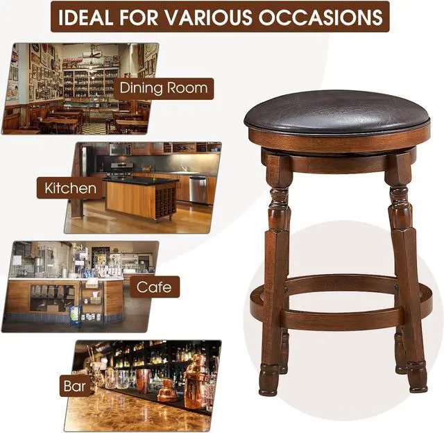Retro Design for Good Versatility: Walnut color gives the bar stool a simple elegant as well as a classic style, which is sure to perfectly complement different home décor. Plus, exquisite engraving legs add aesthetic beauty to the stool, which makes it the highlight of your room. Perfect for either home or pub, it will never let you down.