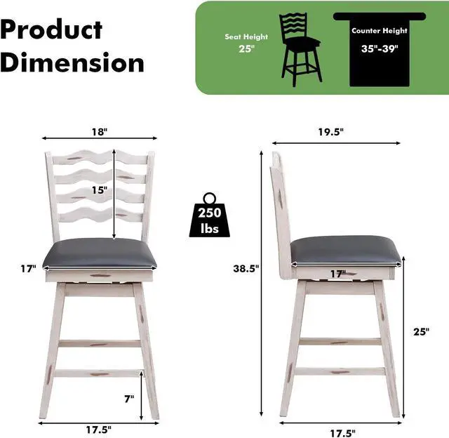 Simple to Assemble: The assembly can be simply completed by using the included hardware and following clear instructions. At the bottom of the legs, foot pads protect the floor from getting scratched when you move the swivel bar stools.