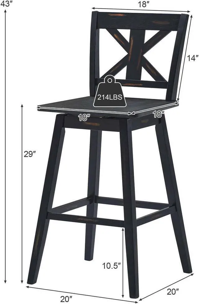 Effortless Assembly: All needed manual and accessories are included in the package. With these necessary tools, you can easily assemble the bar stool set. The overall dimension of each stool is 20" x 20" x 43" (L x W x H) and the seat is 29" high. During daily life, you only need to wipe it with a damp cloth regularly.