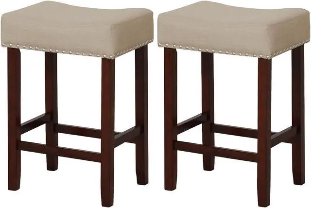 Stylish and Practical Bar Stools: The beautiful beige/gray cushion matches well with the brown wooden frame, making the bar stool set a wonderful addition to your room. Meanwhile, the nailhead trim design and smooth lines add more charm.