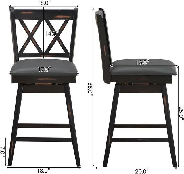 Durable and Sturdy Construction: The bar stool is made of high quality rubber wood with a X-back frame , making it superior to stability and durability . And it can hold up to264 lbs . Also , the solid leg keep it stable without shaking.